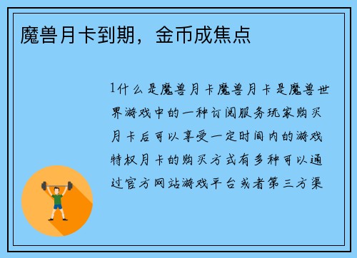 1. 什么是魔兽月卡 魔兽月卡是《魔兽世界》游戏中的一种订阅服务,玩家购买月卡后可以享受一定时间内的游戏特权。月卡的购买方式有多种,可以通过官方网站、游戏平台或者第三方渠道进行购买。月卡的有效期为30...